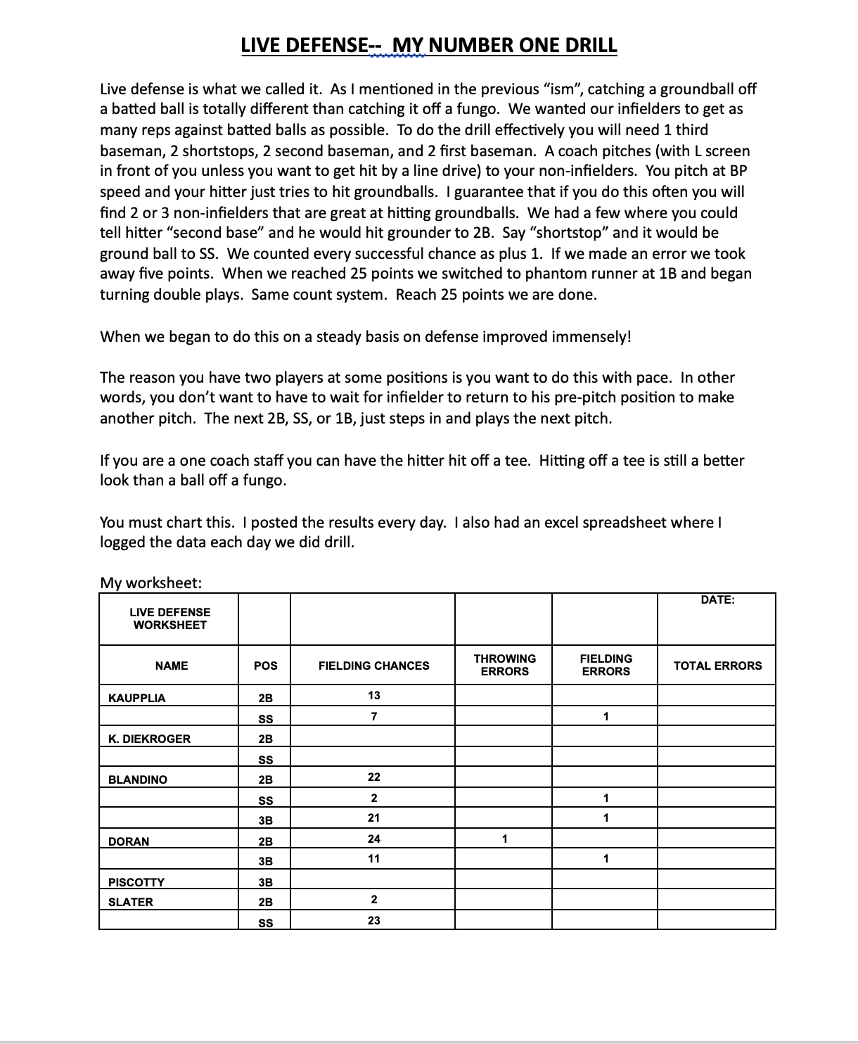 Pitching Chart + Live Defense is a complete Excel-based charting system designed to help coaches and players focus on what truly wins games. Track every pitch with purpose, hold pitchers accountable, and measure infield defense through live, game-speed reps. Built on the belief that information is power, this system creates clarity, consistency, and confidence for pitchers and defenders alike.